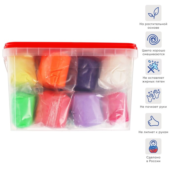 Тесто для лепки ИГРОТЕКА - это пластилин на растительной основе, в составе: мука, крахмал, вода, соль, ароматизатор, краситель, растительное масло, консерванты.