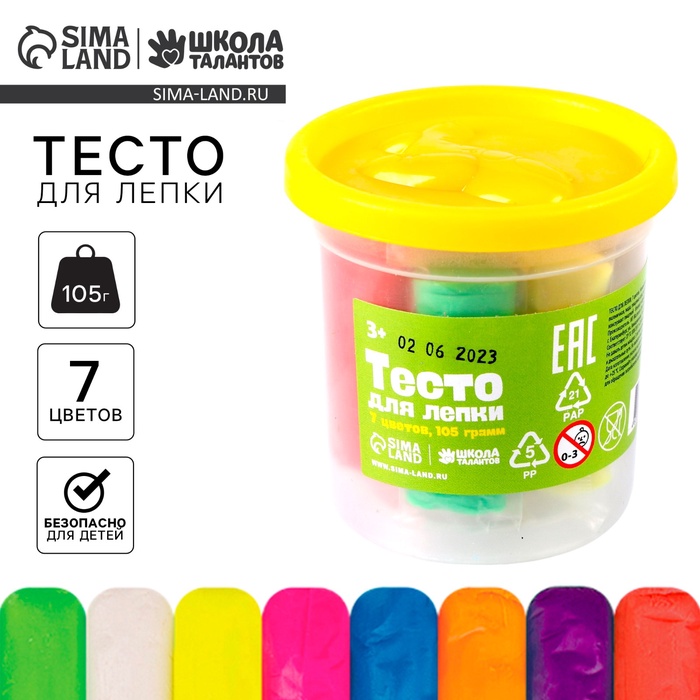 Тесто не остаётся на руках и не имеет неприятного запаха. Малышу будет комфортно заниматься с таким материалом.На открытом воздухе тесто застывает в течение 12 часов.