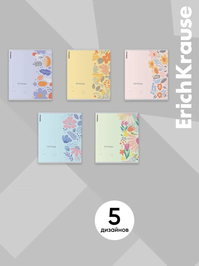 Тетрадь 12 листов в клетку ErichKrause Ikebana, 60 г/м², обложка мелованный картон, МИКС