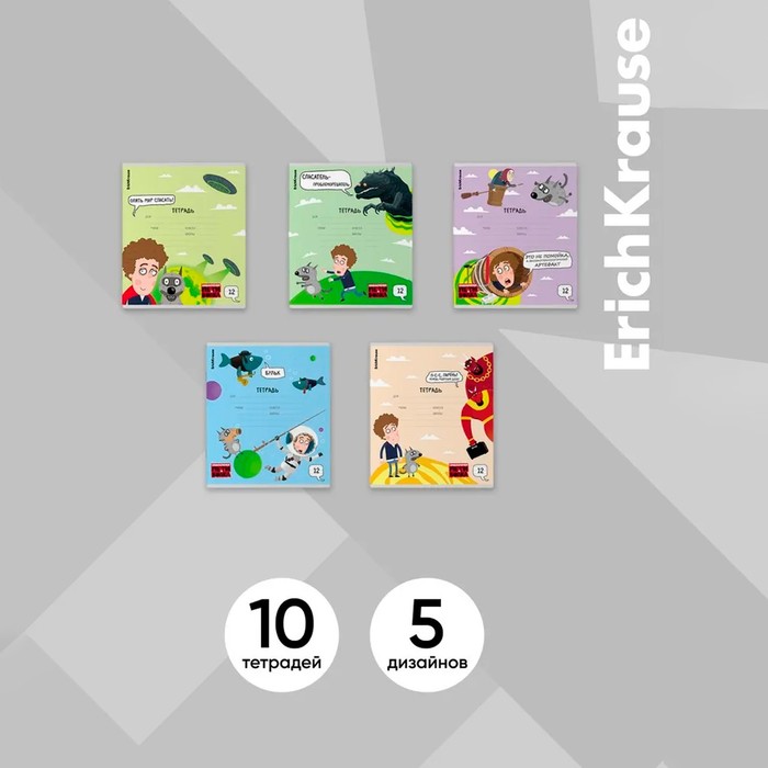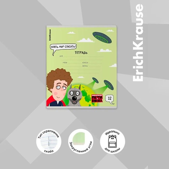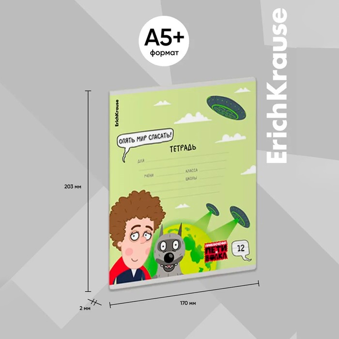 Тетрадь 12 листов в линейку ErichKrause «Приключения Пети и Волка», обложка мелованный картон, блок офсет, белизна 100%, МИКС