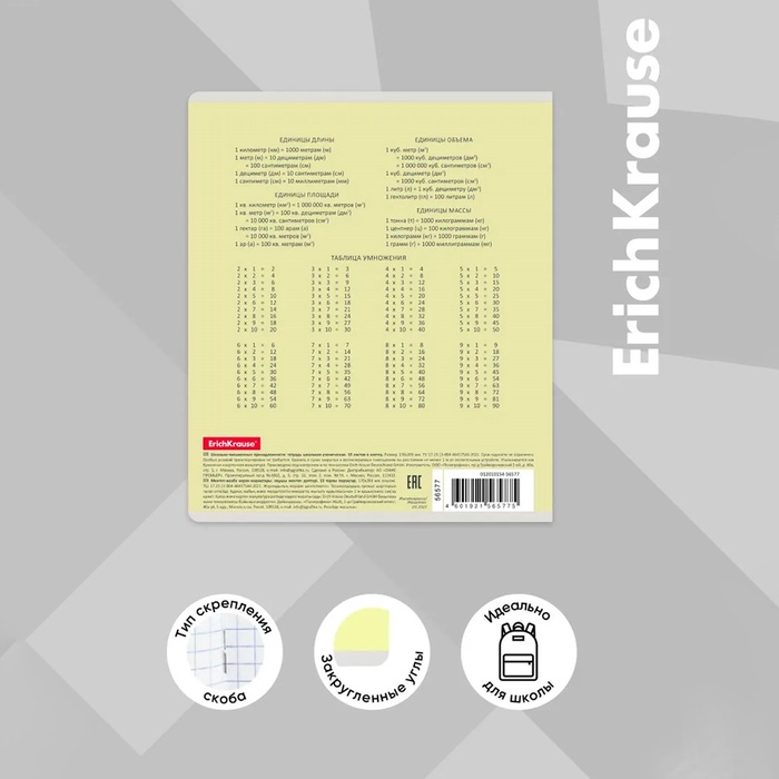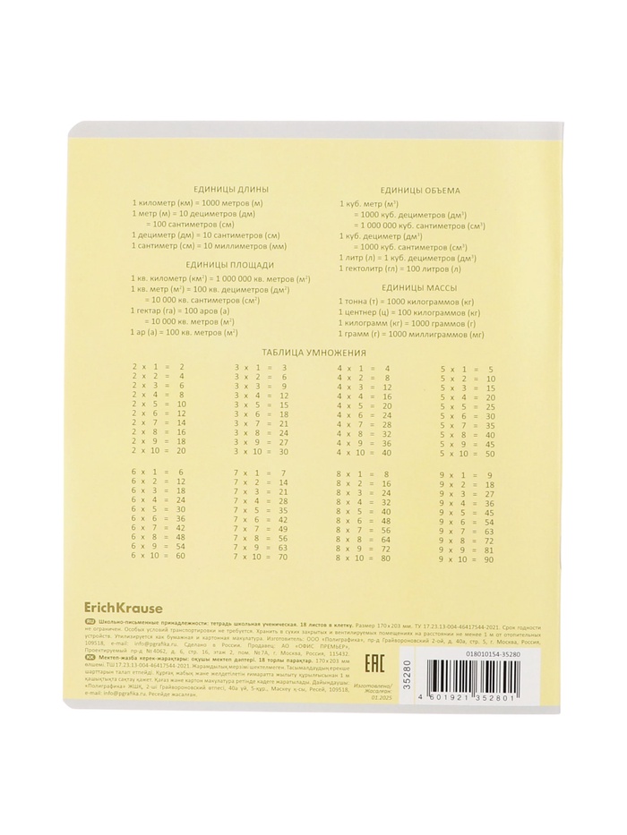 Тетрадь школьная ученическая формата А5+ (170 х 203 мм). Обложка из высококачественного мелованного картона плотностью 180 г/м2. В блоке 18 листов в клетку с полями. Бумага офсетная плотностью 60 г/м2. Цвет линовки - синий. Скругленные уголки обложки и блока. Тип скрепления - скоба. Тетради упакованы в термоусадочную пленку по 10 штук.
