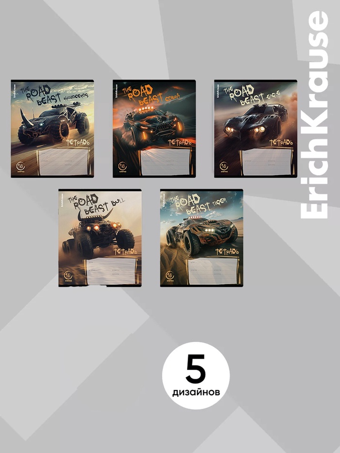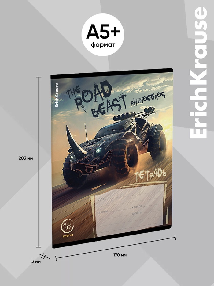 Тетрадь 18 листов в клетку ErichKrause Road Beas, 60 г/м², обложка мелованный картон, МИКС