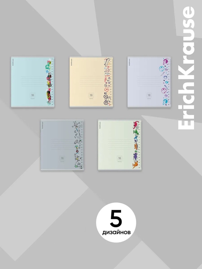 Тетрадь 18 листов в клетку ErichKrause Ruler Hobb, 60 г/м², обложка мелованный картон, МИКС