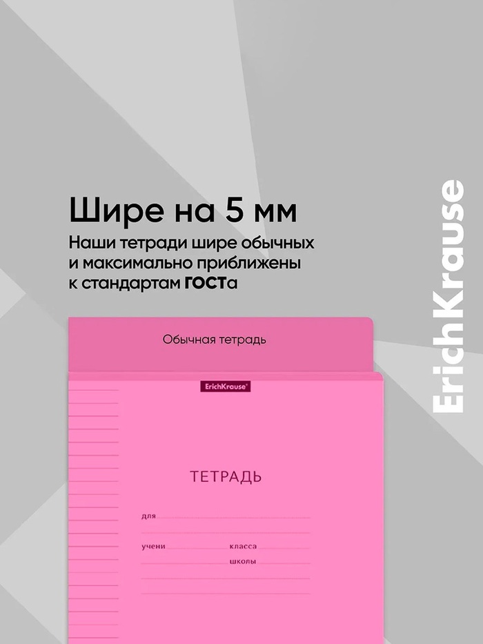 Тетрадь школьная ученическая формата А5+ (170 x 203 мм). Двойная обложка: внешняя выполнена из высококачественного износостойкого цветного пластика с фактурой "апельсиновая корка", внутренняя — из офсетной бумаги. В блоке 18 листов в линейку. Бумага офсетная плотностью 60 г/м2. Цвет линовки — синий. Скругленные уголки обложки и блока. Тип скрепления — скоба. Тетради упакованы в термоусадочную пленку по 10 штук.