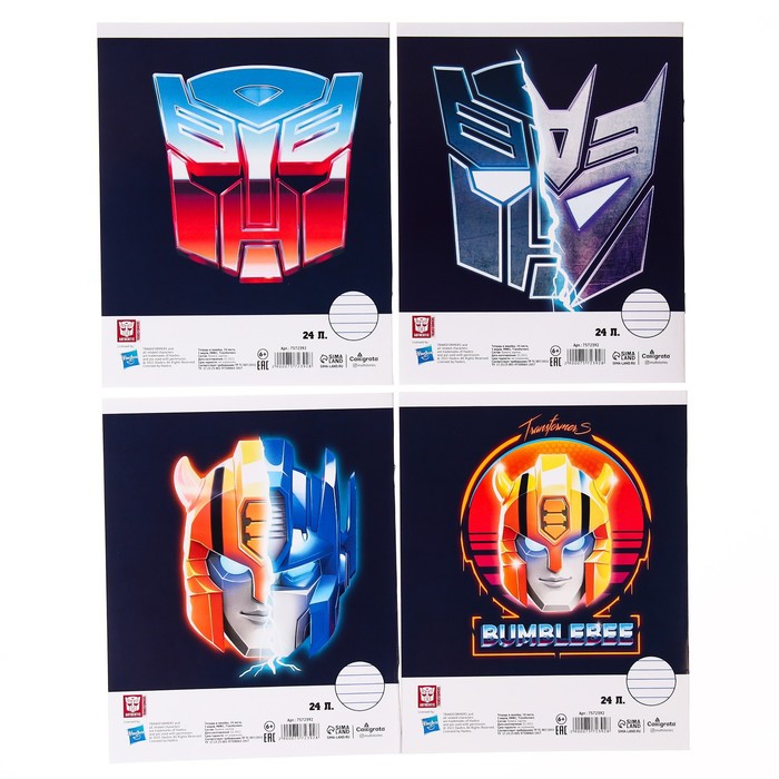 Тетрадь 24 листа, 20 шт. в линейку, обложка бумага мелованная, Трансформеры