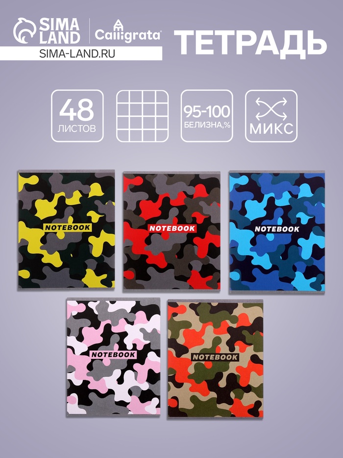 Тетрадь 48 листов в клетку Calligrata «Цветной камуфляж», обложка мелованный картон, блок офсет, МИКС