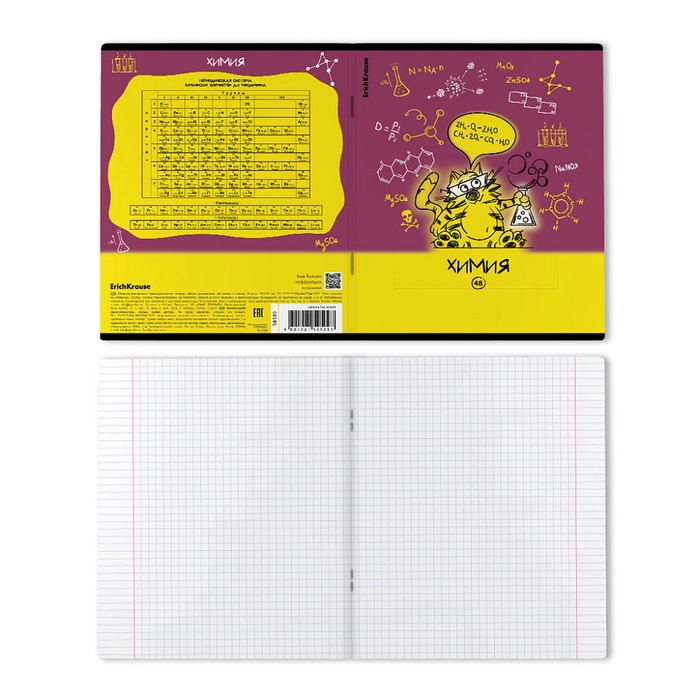 Тетрадь 48л кл ХИМИЯ ErichKrause "Котоформулы", пластик обложка