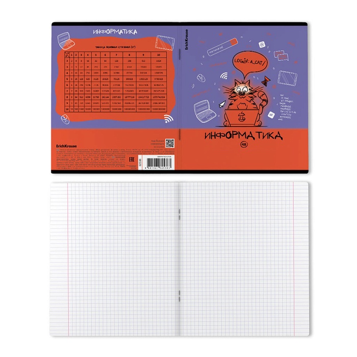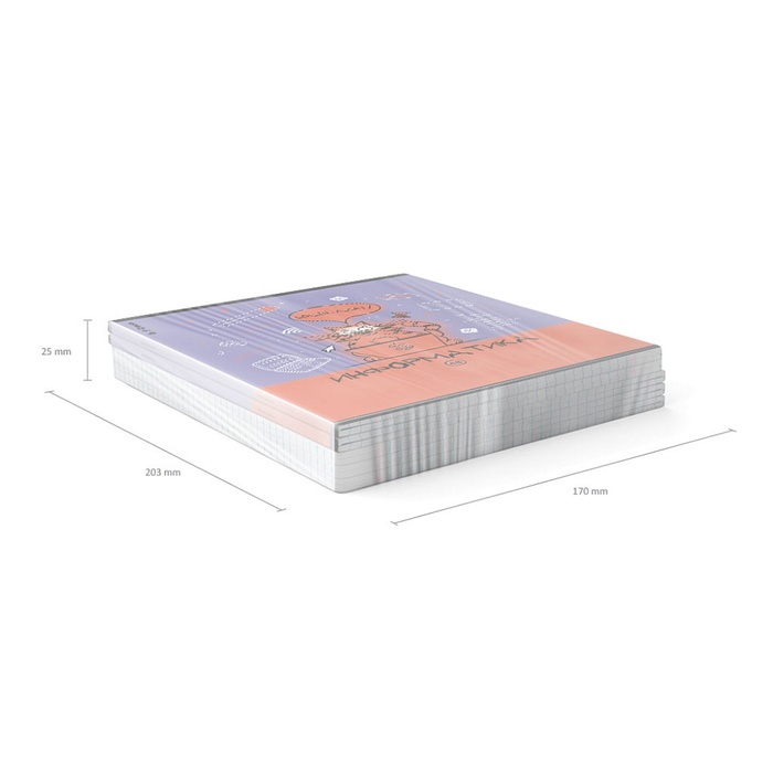 Тетрадь предметная формата А5+ (170x203 мм). Двойная обложка: внешняя выполнена из высококачественного износостойкого прозрачного пластика с фактурой «апельсиновая корка», внутренняя — из качественной мелованной бумаги. В блоке 48 листов в клетку с полями. Бумага офсетная плотностью 60 г/м2. Белизна бумаги - 100%. Цвет линовки - синий. Скругленные уголки обложки и блока. Тип скрепления - скоба. Имеет инфо-блок с кратким изложением школьной программы.