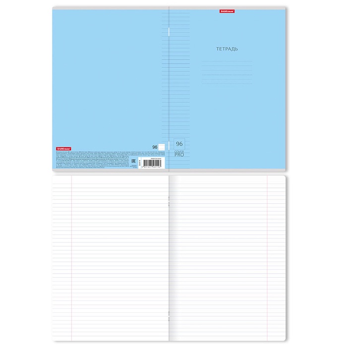 Тетрадь А4, 96 листов в линейку ErichKrause «Классика» CoverPrо, пластиковая обложка, блок офсет, белизна 100%, МИКС
