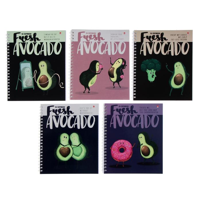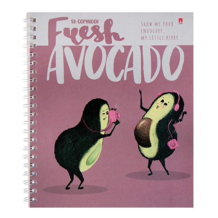 Тетрадь А5+, 80 листов в клетку на гребне «Авокадо», обложка мелованный картон, глянцевая ламинация, блок офсет, МИКС