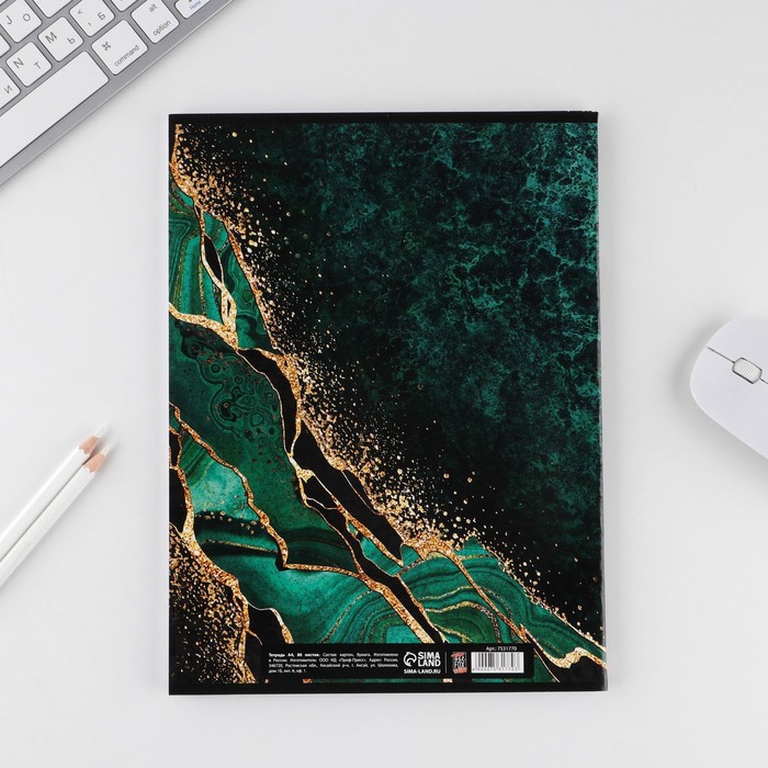 Тетрадь в клетку А4, 80 л., на скрепке, блок №1«Малахит»