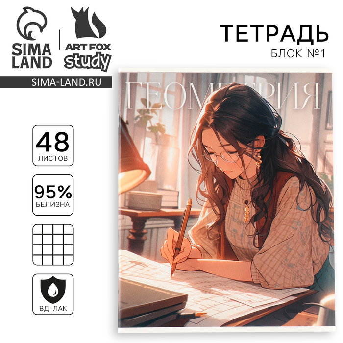 Тетрадь в клетку, предметная, 48 л.,на скрепке, А5 «Аниме. Геометрия»
