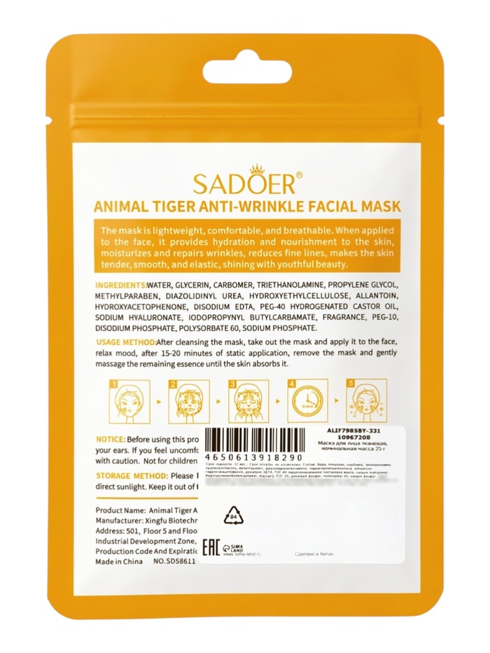 Тканевая маска, увлажяющая "Тигренок", 25 мл