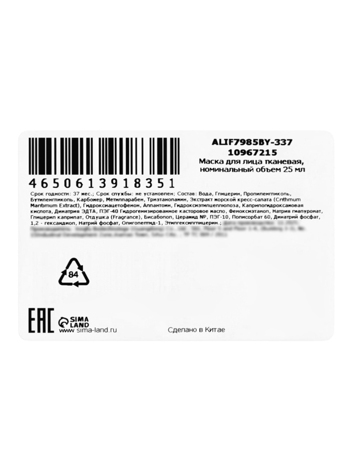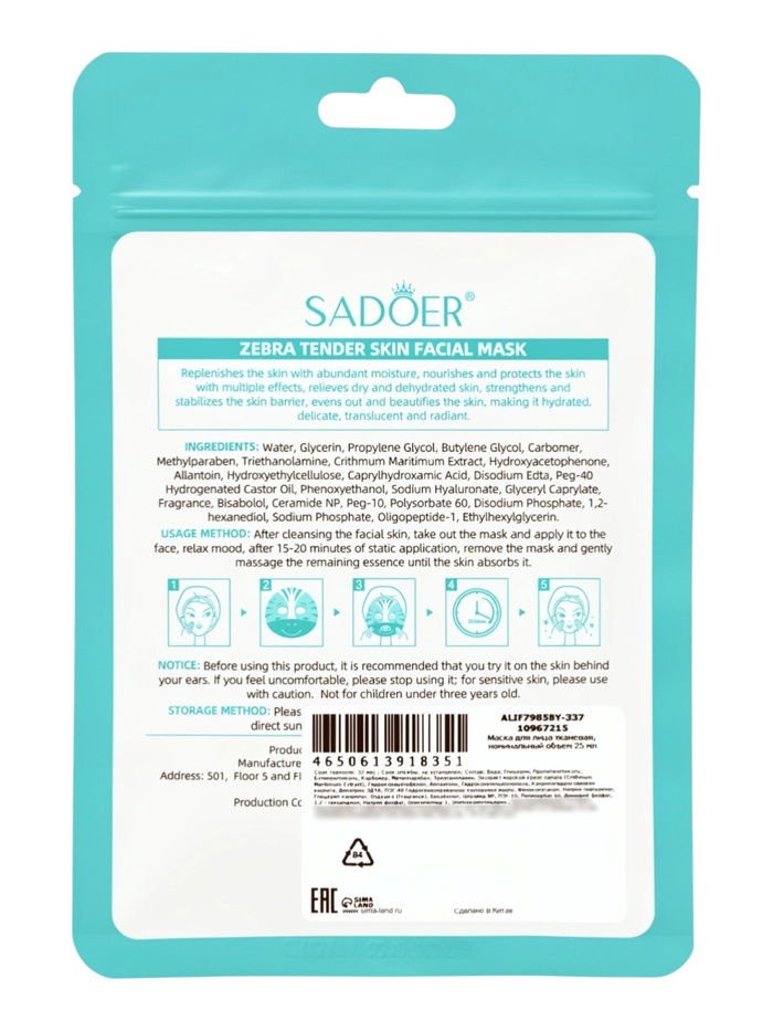 Тканевая маска, увлажяющая "Зебра", 25 мл