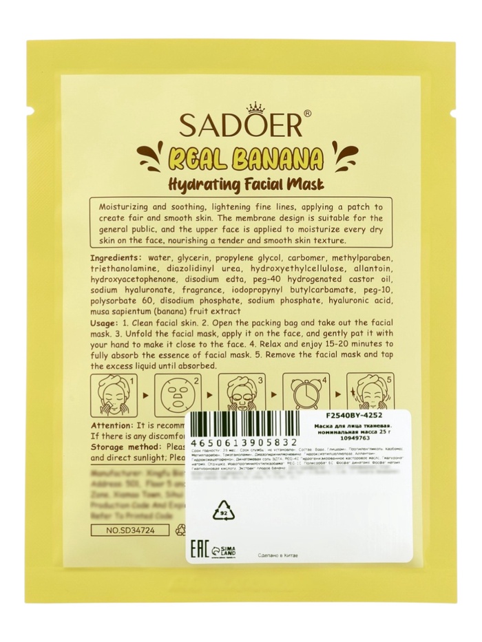Подарите своей коже мгновенное увлажнение и заряд энергии с тканевой маской для лица "Банан" — идеальным средством для домашнего ухода за кожей. Эта маска насыщает кожу влагой, питает её витаминами и придаёт мягкость и естественное сияние, превращая ежедневный уход в настоящее спа-удовольствие.