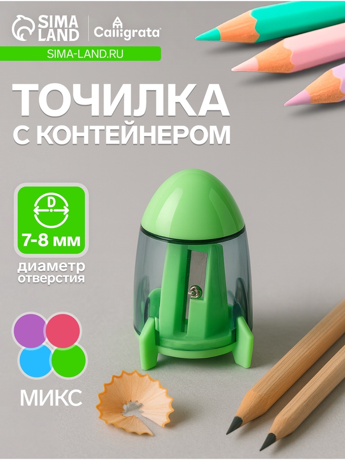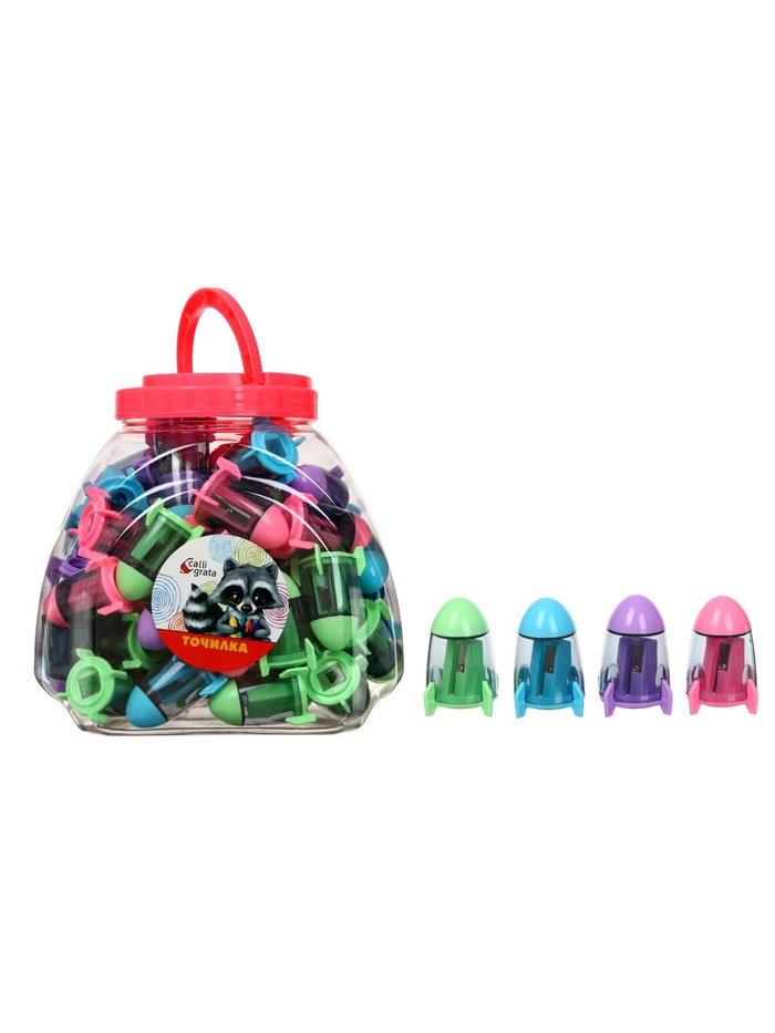 Точилка с контейнером с ластиком "Ракета", корпус МИКС
