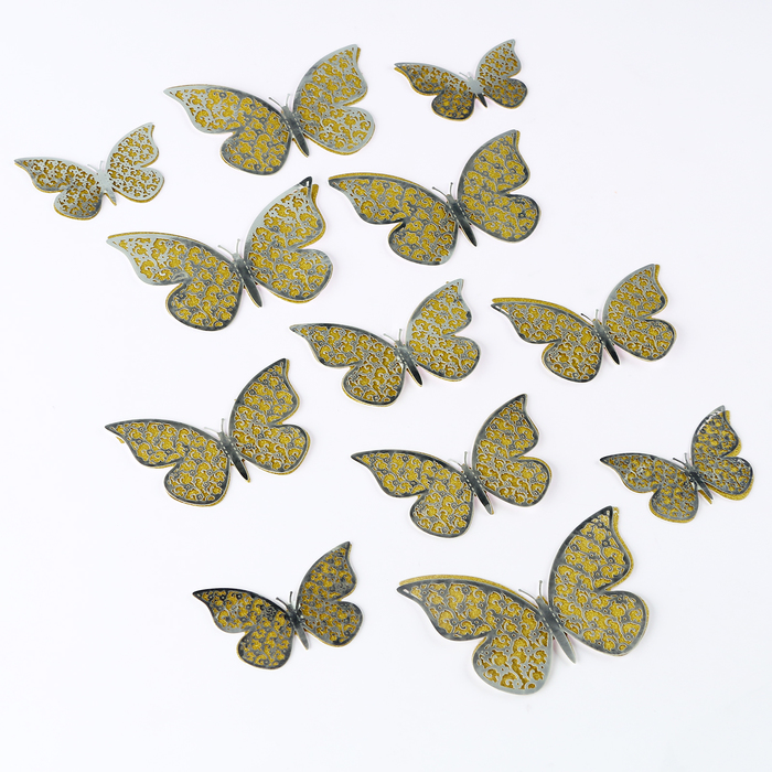 В этот набор входят 12 серебристых бабочек, которые станут отличным выбором для декоративного оформления интерьеров и создания праздничной атмосферы. Бабочки лёгкие и прочные, поэтому их можно использовать для украшения стен, мебели и оформления мероприятий.