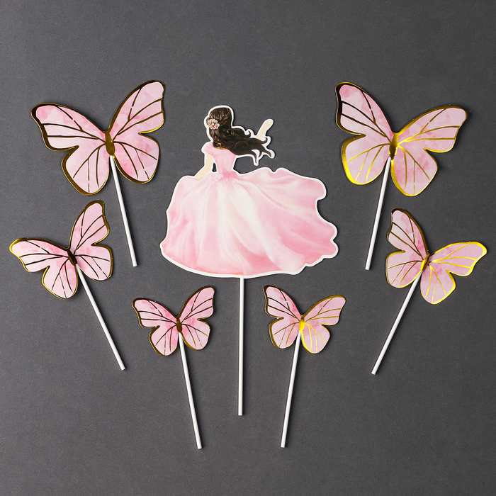 Набор топперов «Девушка с бабочками» — идеальный выбор для любого праздника! В этот набор входят 7 топперов, которые идеально подходят для украшения тортов, десертов и букетов цветов. Изделия изготовлены из бумаги и пластика. Их можно использовать в качестве декора для самых разнообразных праздников.