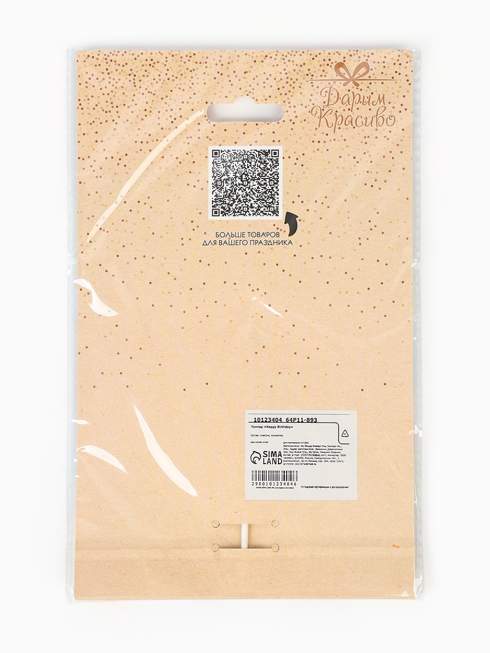 Топпер для торта Happy Birthday, серебряный