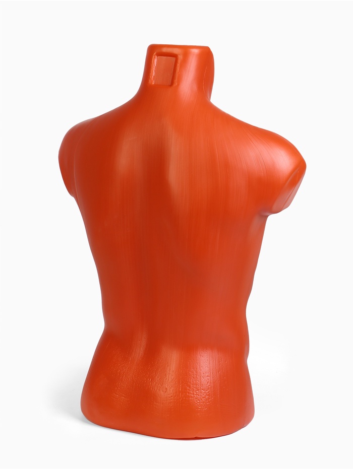 Оранжевый мужской торс демонстрационной формы представляет собой компактную и практичную модель для экспозиции одежды. Конструкция, выполненная с соблюдением пропорций мужского тела, помогает в лучшем свете представить товар — футболки, майки, рубашки-поло.