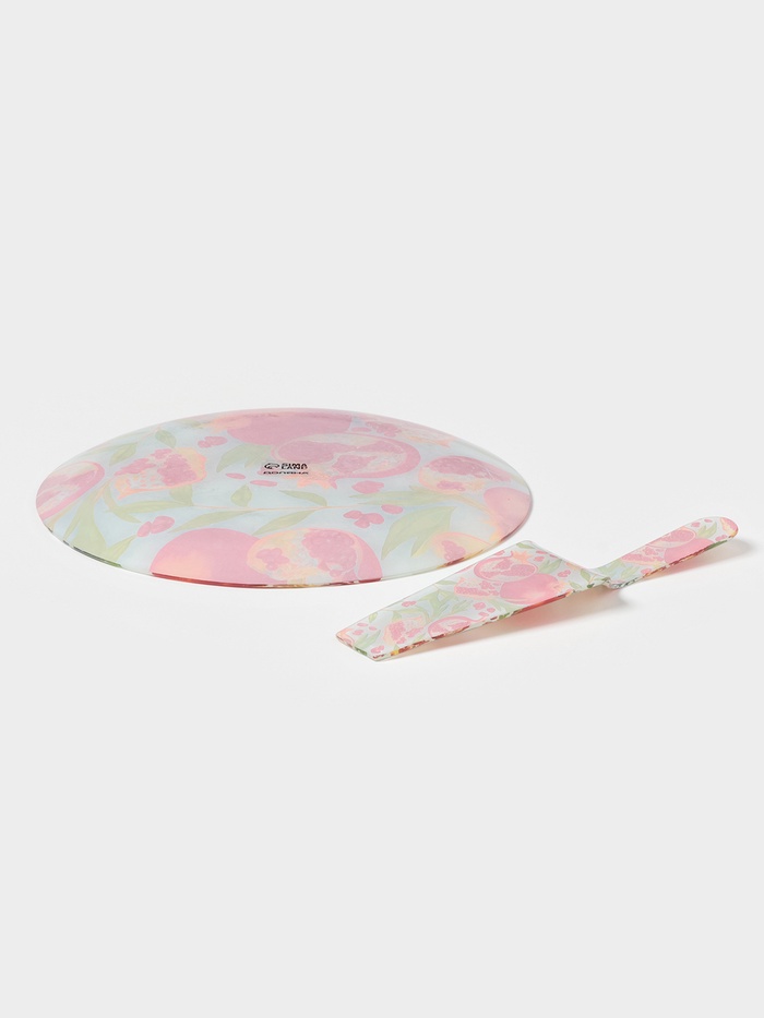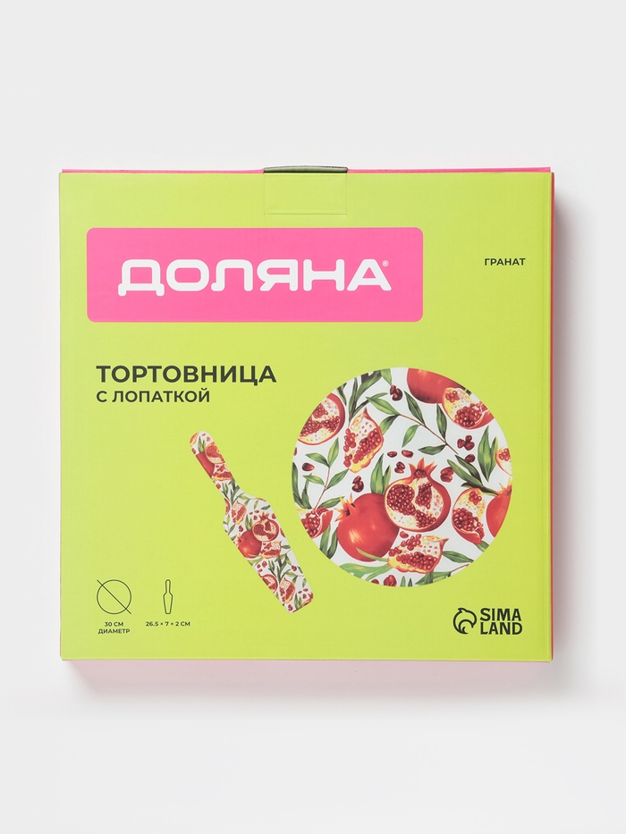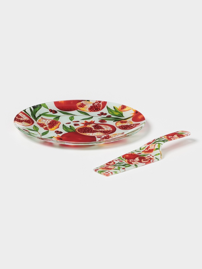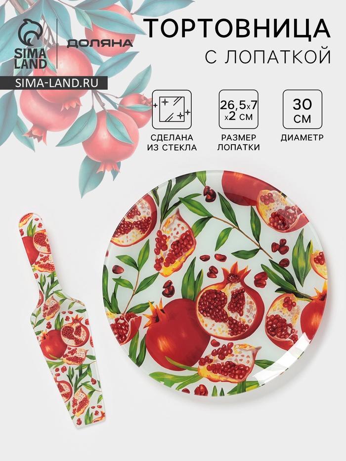 Тортовница с лопаткой Доляна «Гранат», 2 предмета: блюдо d=30 см, лопатка 26.5×7×2 см, стекло, рисунок
