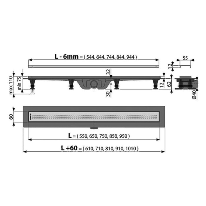 - предназначен для цельных решеток из нержавеющей стали, закаленного стекла, искусственного камня и их различных комбинаций;