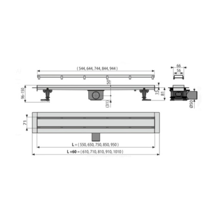 Трап Alcadrain Fit&Go APZ13-DOUBLE9-550, с двухсторонней решеткой, 550 мм