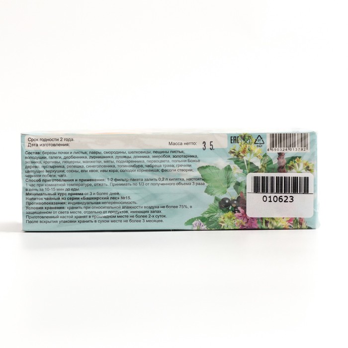 Состав: почки березы, березы, лавра, смородины, шелковицы листья, володушки, галеги, дербенника, дурнишника, душицы, донника, зверобоя, золотарника, зюзника, крапивы, люцерны, манжетки, мяты, первоцвета, подмаренника, полыни Божье дерево, пустырника, репешка, синеголовника, топинамбура, цикория, чабреца трава; гречихи цветущие верхушки, ели, сосны хвоя, ивы кора, солодки корневища, фасоли створки, чага, черники побеги.