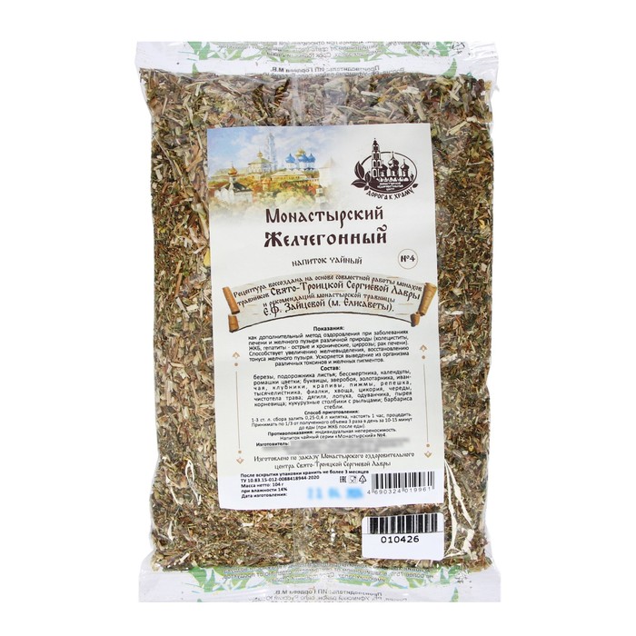 Состав: березы, подорожника листья; бессмертника, календулы, ромашки цветки; буквицы, донника, дымянки, зверобоя, золотарника, иван-чая, клубники, крапивы, пастушьей сумки, пижмы, репешка, тысячелистника, фиалки, хвоща, цикория, череды, чистотела трава; лопуха, одуванчика, пырея корневища; кукурузные столбики с рыльцами.
