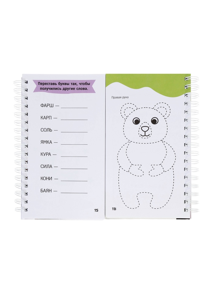 - Уникальный формат книги: двуликая структура с разворотом в противоположные стороны для разных типов упражнений.