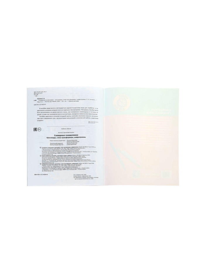 Тренажёр «Словарные головоломки, кроссворды, слова-трансформеры, шифрограммы», Зеленко С.В., 31 стр.