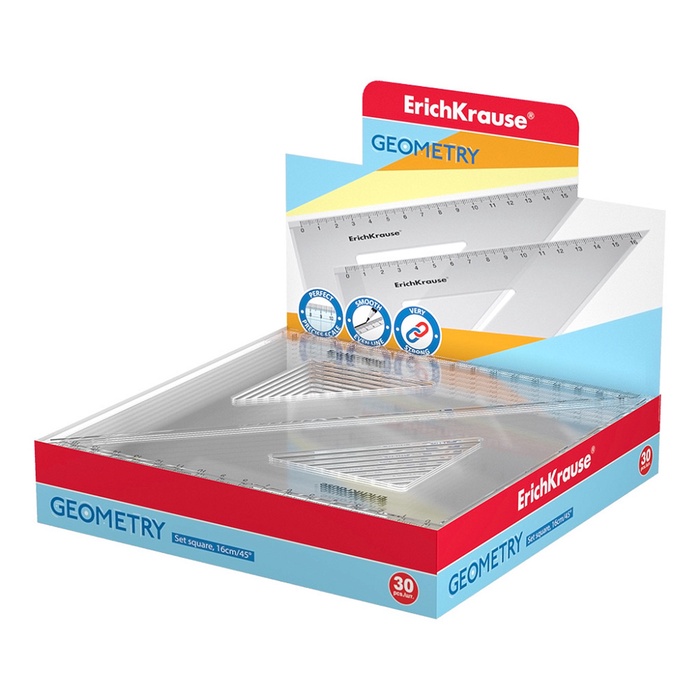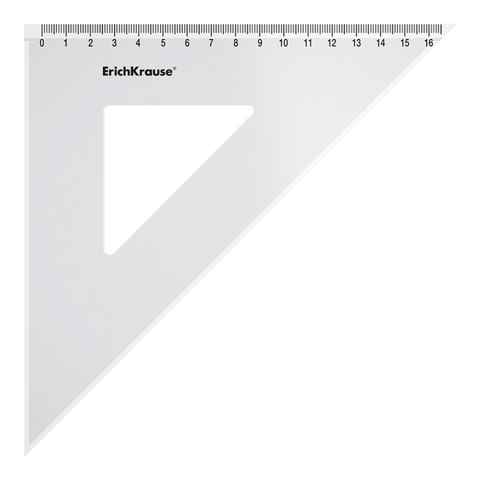 Прозрачный угольник 45 градусов из высококачественного пластика. Длина разметки – 16см.