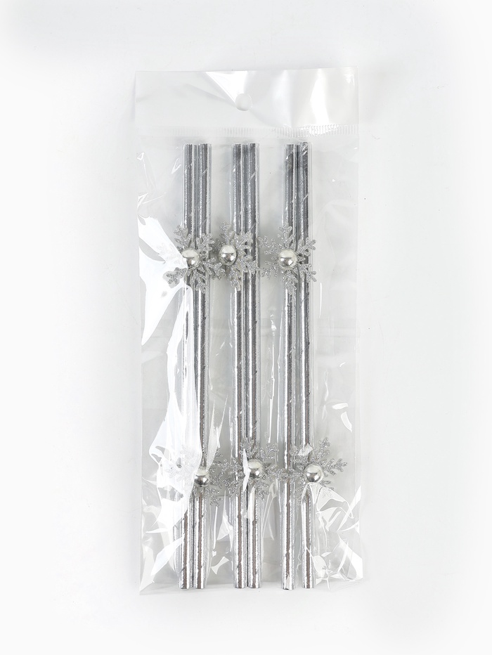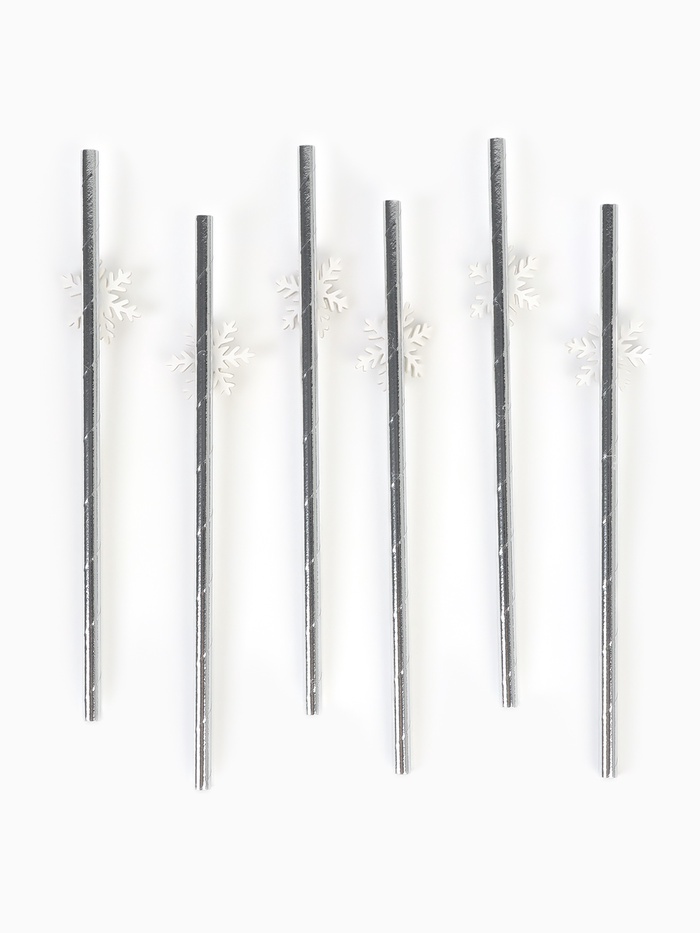 Трубочки для коктейлей «Снежинки», серебро, 6 шт