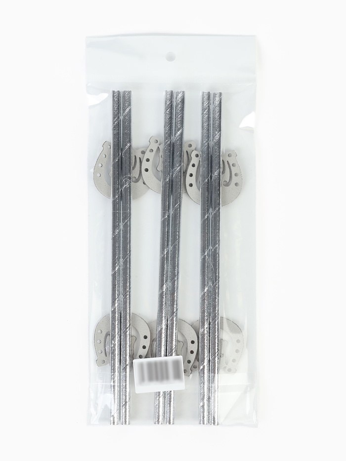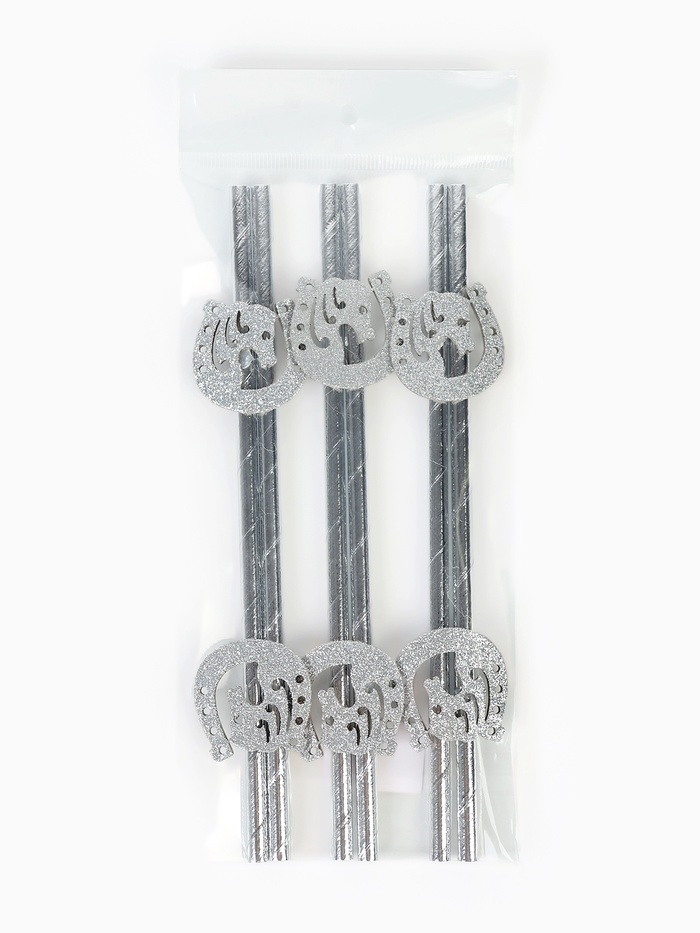 Трубочки для коктейля "Подкова" серебряные, набор 6 шт.