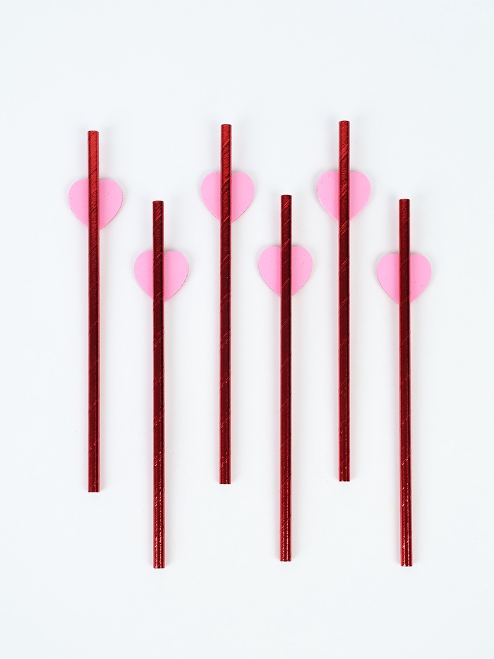 Трубочки для коктейля «Сердце», красные (набор 6 шт)