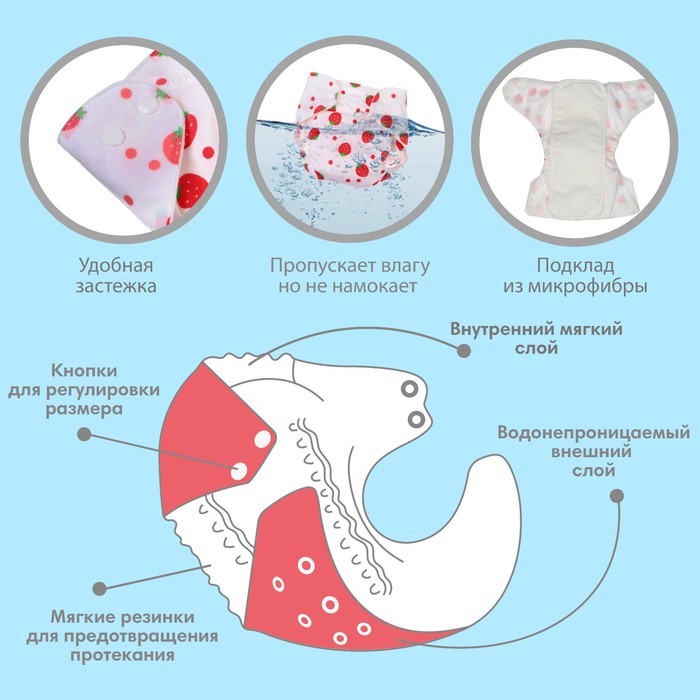 • Размер подгузника универсальный, подходит для детей от 3 до 15 кг, от рождения до 3 лет;