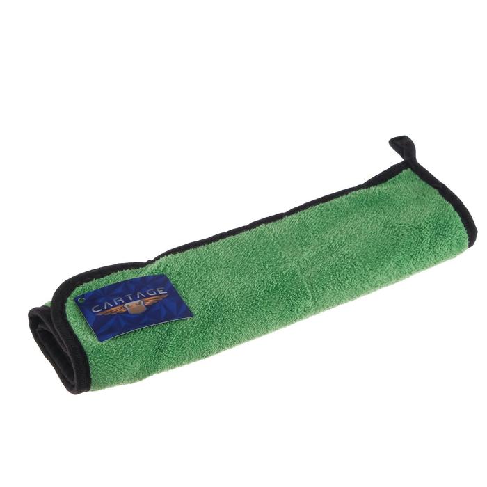 Салфетка CARTAGE из микрофибры со стандартной махровой структурой и составом полиэстера и полиамида (нейлона) 80/20. Хорошо впитывает жидкости и удаляет загрязнения с любых поверхностей автомобиля.