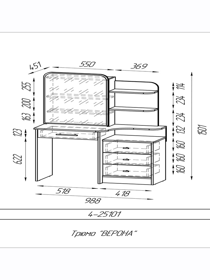 Трюмо «ВЕРОНА», 988×451×1501 мм, цвет графит/дуб крафт табачный