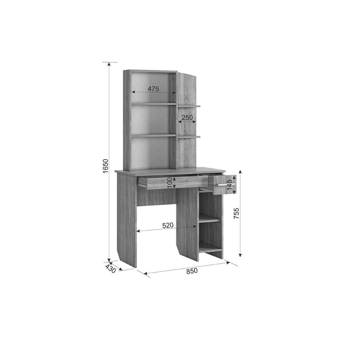 Виктория-1 – это не просто Трюмо. Это место, где каждая деталь важна. С его помощью вы сможете организовать все необходимое: от косметики до аксессуаров. Удобные отделения, выдвижной ящик и просторные полки сделают использование столика максимально комфортным
