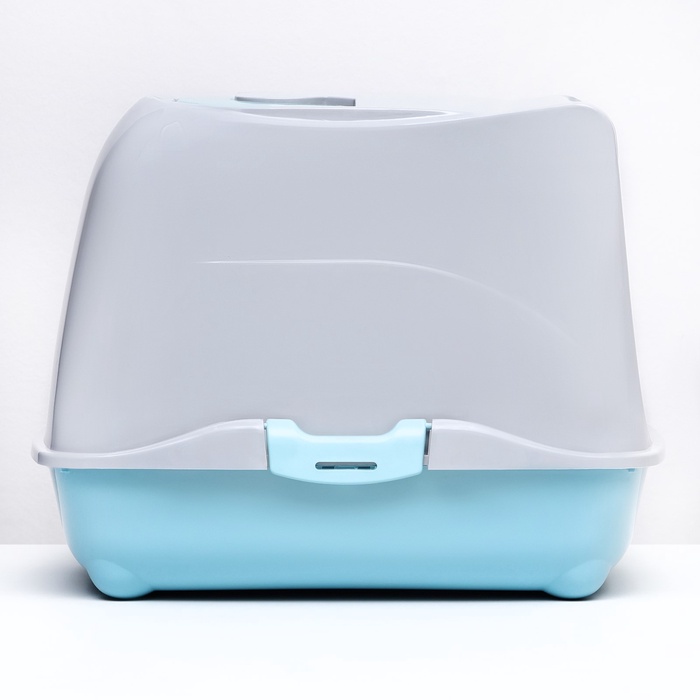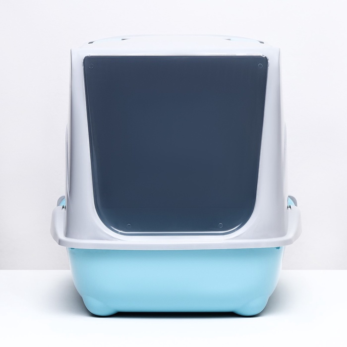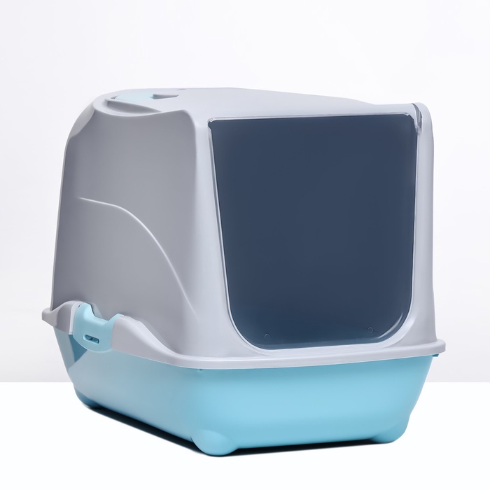 Закрытый туалет с дверцей в сером цвете создает комфортные условия для питомца и помогает поддерживать чистоту в доме.