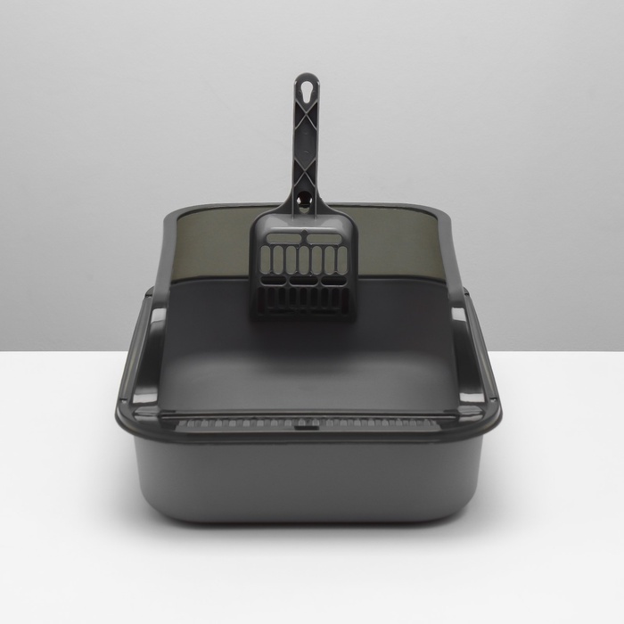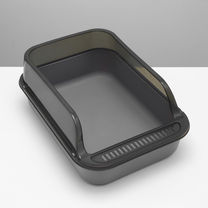 Туалет с прозрачными бортами с совком и фильтром, 40 х 28 х 16 см, серый
