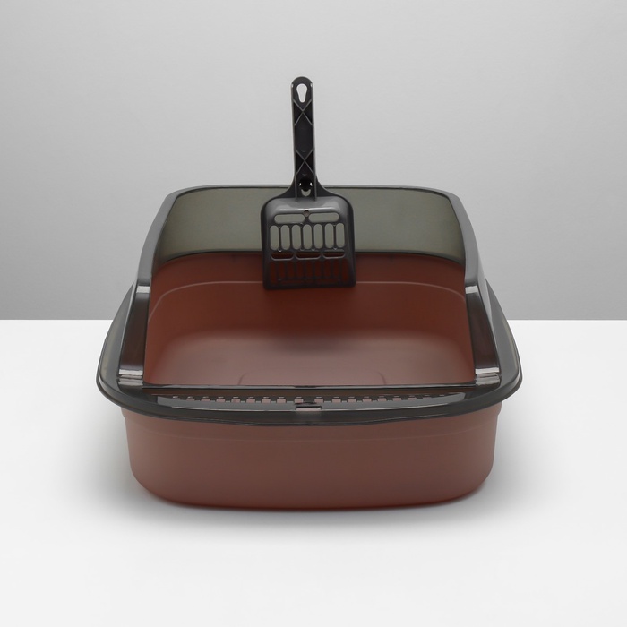 Туалет с прозрачными бортами с совком и фильтром, 50 х 34 х 18 см, коричневый