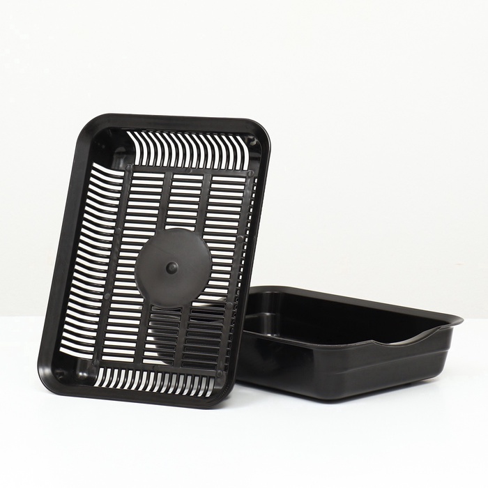 Туалет с сеткой для кошек - это модификация туалет-лотка, оснащенная специальной сеткой на дне, которая предназначена для удобного удаления отходов кошки и предотвращения контакта с ними.