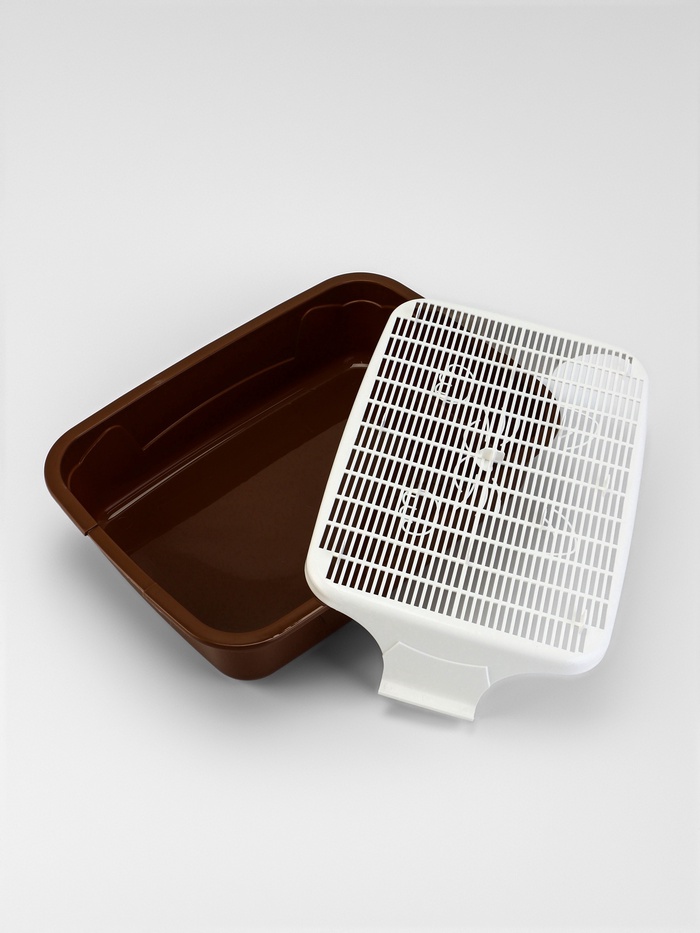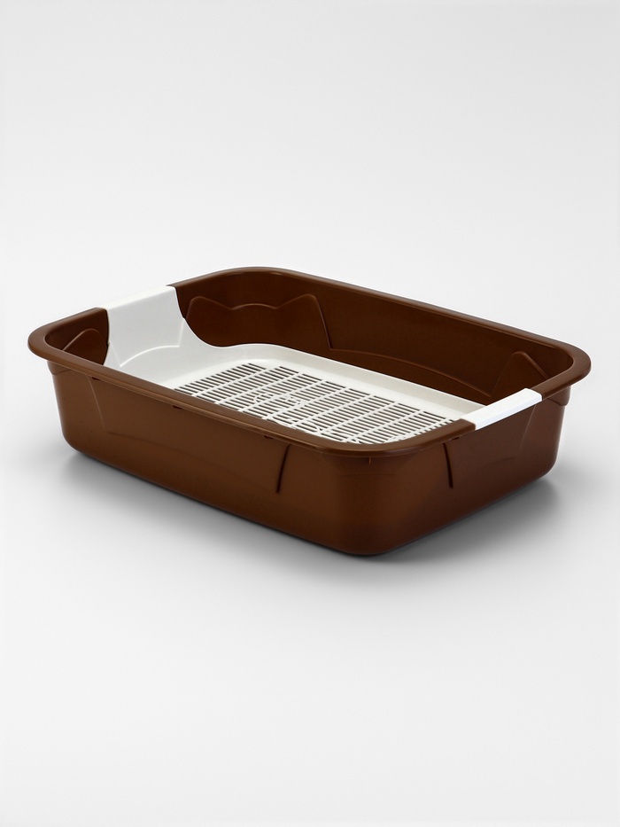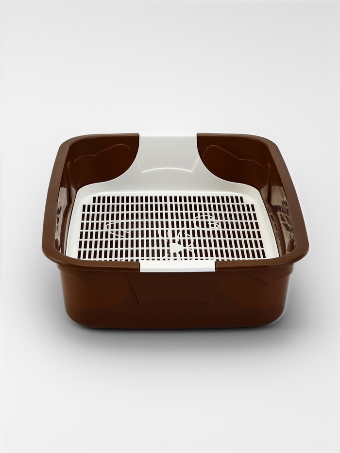 - Функция сетки: Съёмная решётка на высоте 1,5 см создаёт зонирование: животное ходит сверху, а отходы остаются внизу. Это минимизирует контакт с использованным наполнителем и уменьшает запахи.