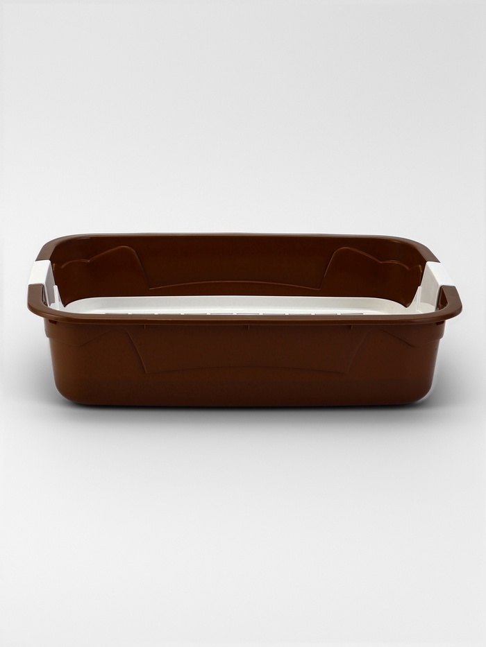 - Сдержанный внешний вид: Коричнево-белый цвет сочетается с разными стилями интерьера. Лоток выглядит аккуратно и не привлекает лишнего внимания, даже если стоит в гостиной или коридоре.