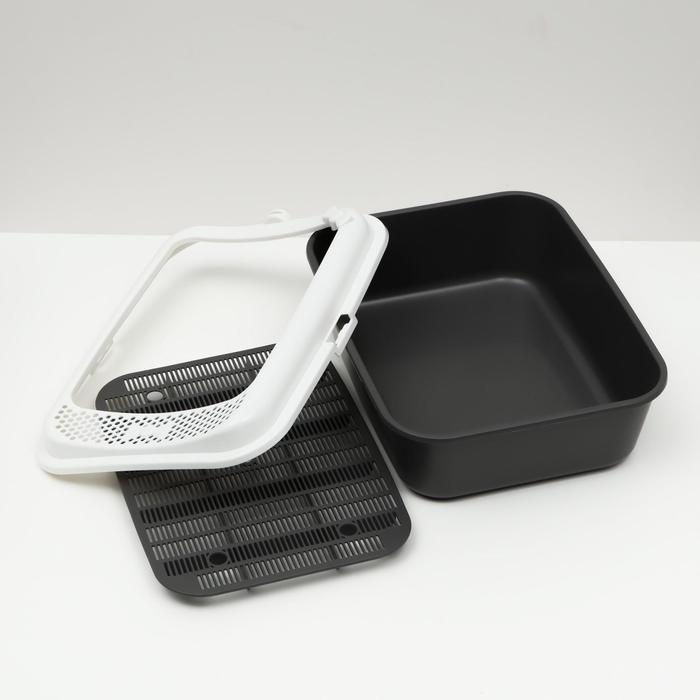 Материал абсолютно безопасен для здоровья питомца и не имеет посторонних химических запахов. Наличие борта по периметру лотка поможет предотвратить разбрасывание наполнителя. Борт легко убирается, если Ваш любимец еще совсем маленький и ему трудно залезть в лоток.