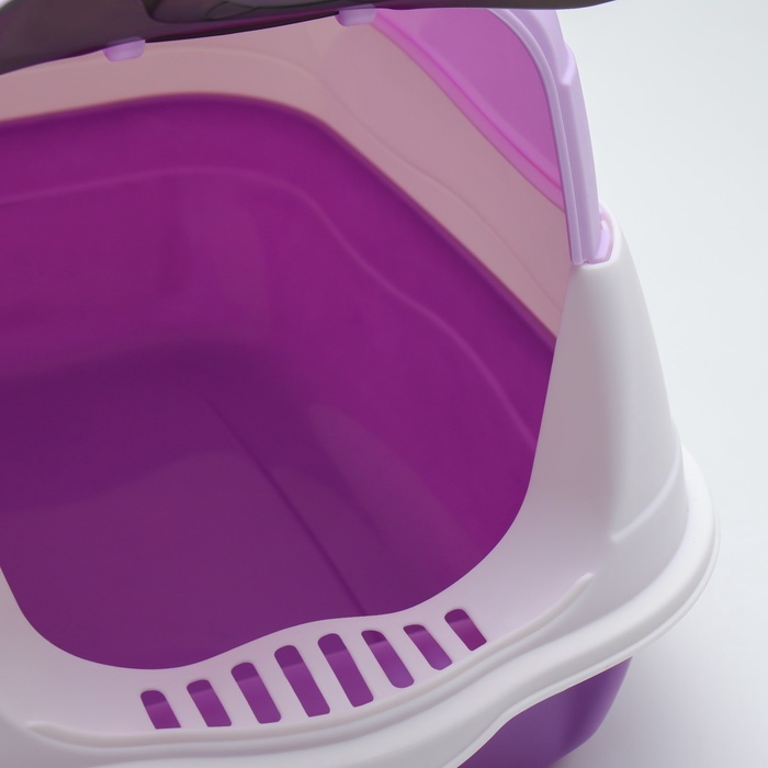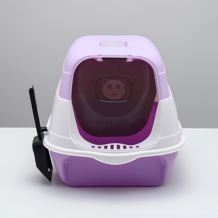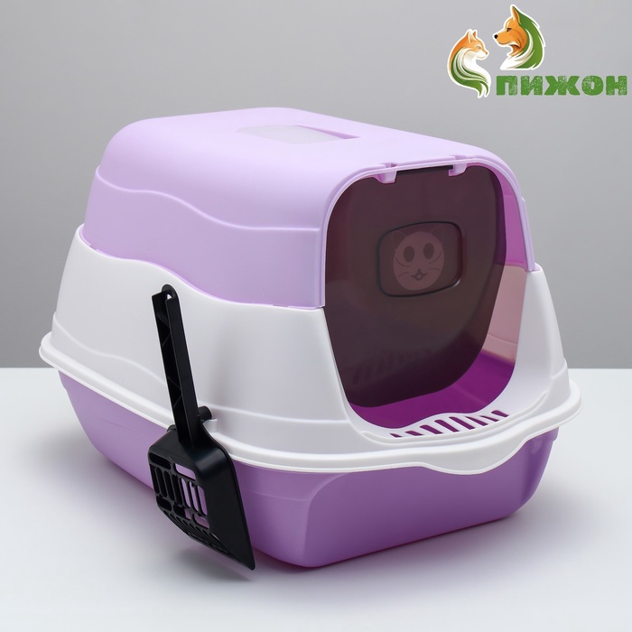 Закрытая конструкция: Туалет с закрытым верхом помогает заметно уменьшить распространение запахов и прятать наполнитель, что делает пространство более аккуратным. Кошка может чувствовать себя комфортно и защищенно во время использования.