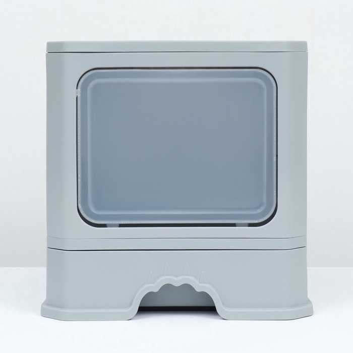 • Имеет двойной вход. Верхняя крышка с отсеком для выхода и с перфорацией – остатки наполнителя с лап питомца останутся на крышке лотка