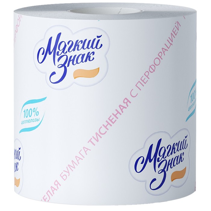 Однослойная белая туалетная бумага Мягкий знак выполнена с тиснением и перфорацией, что придает особенную мягкость и обеспечивает бережный уход за кожей. Быстро растворяется в воде. В каждом рулоне — 432 отрывных листа.