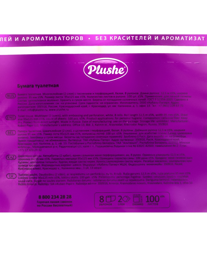 Туалетная бумага Plushe Light – это классическая белая двухслойная бумага без аромата эконом-класса, идеально подходит для ежедневного использования.